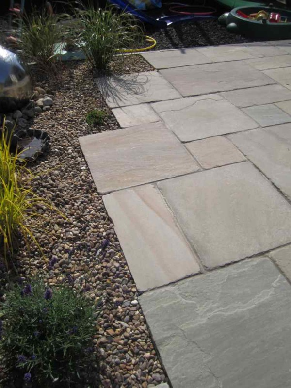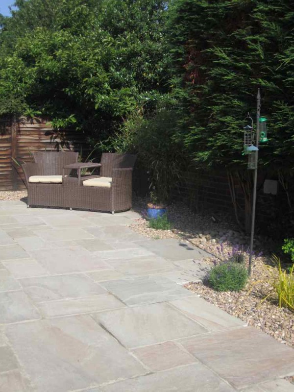 Another recent client was very settled in her current home but never spent a great deal of time in her garden. A beautiful sandstone paved terrace was created in "raj green".
