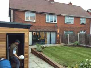 We were delighted to be able to help with this project! 36-year-old Terry Guest, father of two, had suffered a catastrophic brain injury leaving him with severe disabilities. As his house was unsuitable, the only care available was in an old-peoples dementia care home, where he remained for several years. In need of more day-to-day care and a place of his own, his sister Tracey stepped in to offer help, but her house was also unsuitable. Together with a number of generous volunteers from the local area, Tracey's home and garden were transferred into a safe and welcoming home for Terry. A separate living area was constructed in the garden giving Terry the independence he deserved.